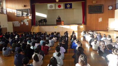 1月8日に3学期始業式を行いました。3学期は、1年の中で一番短い期間ですが、みんなで全力でがんばりましょう。