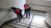 寒い中ですが、お友達と協力しながら、たてわり清掃をがんばっています。